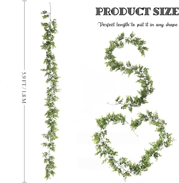 【Greenery Garland Size】Package contains 3 pieces of artificial eucalyptus leaf. Each piece is about 6 FT/180cm, there are 134 large fake eucalyptus leaves, the length is enough for decoration for most occasions. You can trim the length according to your needs, Multiple vines can also be connected to decorate larger scenes.