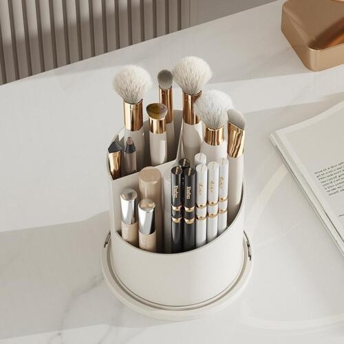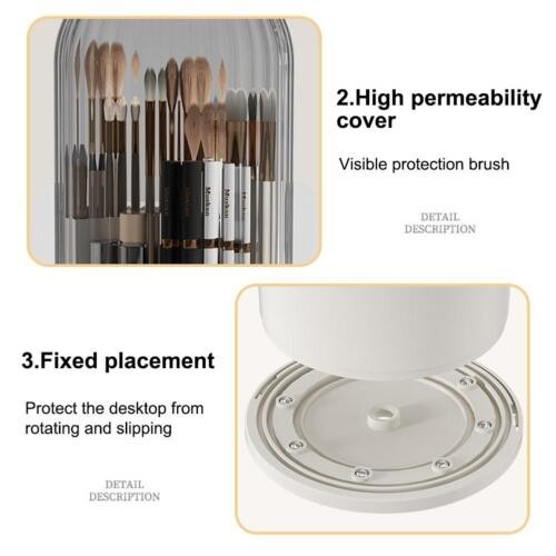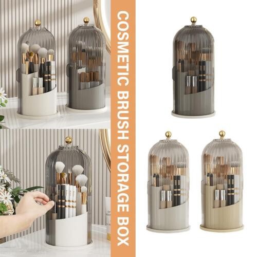 360° Rotating Makeup Brush Storage Box Dustproof Cover Cosmetic Organizer