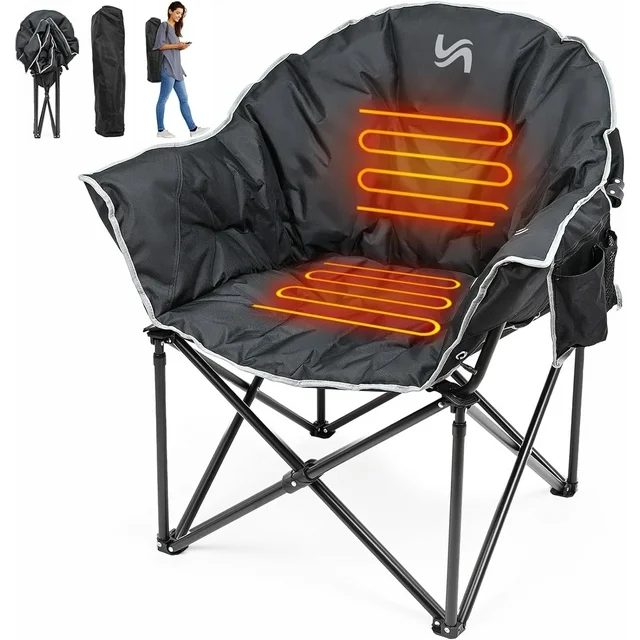 ABORON Oversized Heated Camping Chair, Outdoor Portable Heated Folding Chairs, Patio Lounge Chairs with 3 Heat Levels, Heating Chair for Outdoor Sports, Camping