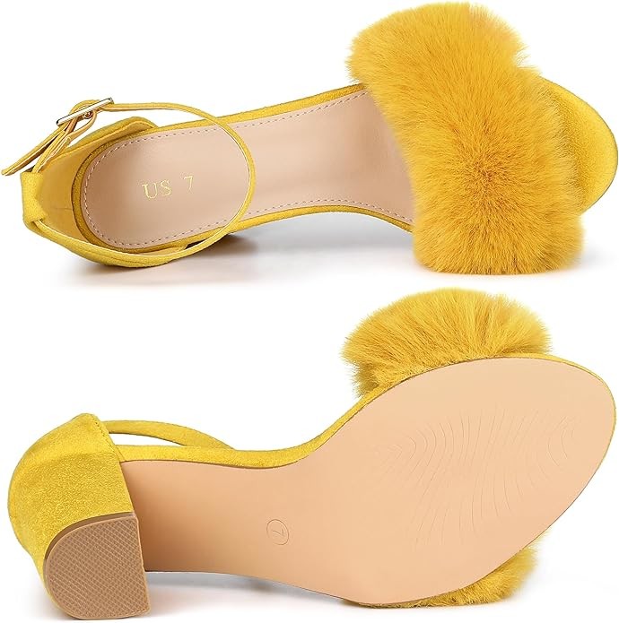 Allegra K Women's Faux Fur Ankle Strap Block Heels Sandals