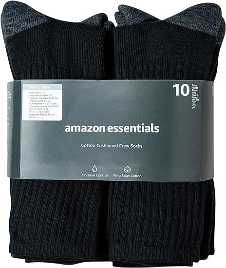 Amazon Essentials Men's Cotton Half Cushioned Crew Socks, 10 Pairs