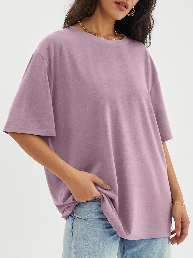 • Design:Oversized workout shirts for women,short sleeve shirtrs,plus size,round neck,loose fit tops,basic tees,oversized casual blouse,solid color never out of style,easy to match with every style.