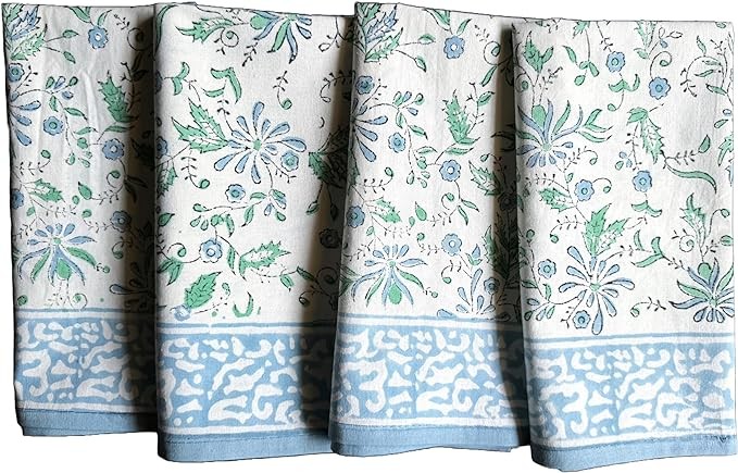 QUALITY CRAFTSMANSHIP - HANDCRAFTED: Inspired by the influence of French Provencal art, these napkins feature a floral pattern; laboriously hand printed individually using the ancient tradition of hand block printing using intricately carved wooden blocks by skilled artisans in India. Each piece is truly a unique work of art crafted by the human hand. Each piece might have slight variations due to inherent nature of hand block print art which only adds to their beauty.
