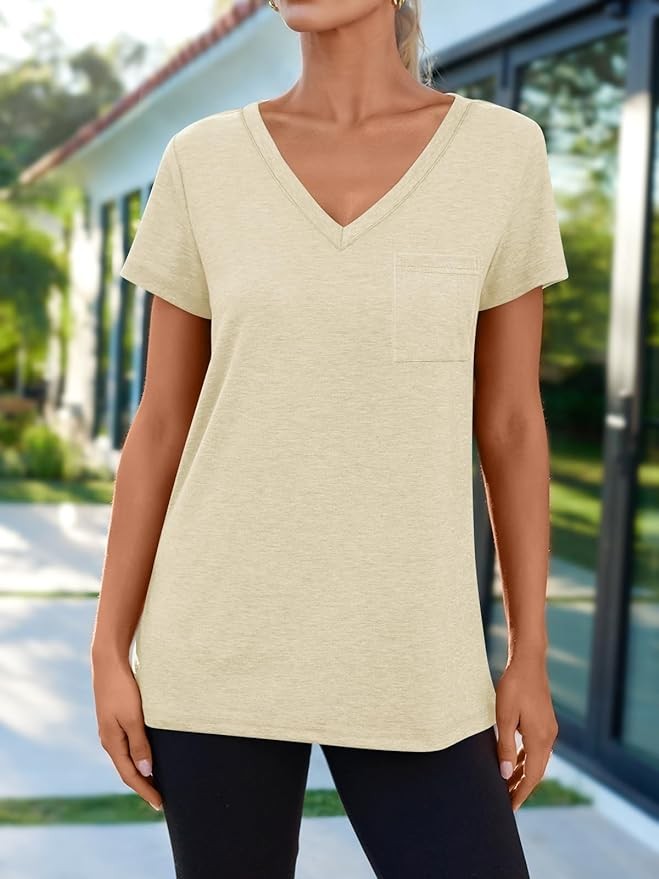• Occasion: Casual V neck tshirts, perfect for daily life workout travel running lhome office vacation sport/gym/yoga/going out. A basic spring summer outfits tees that suitable for all occasions.