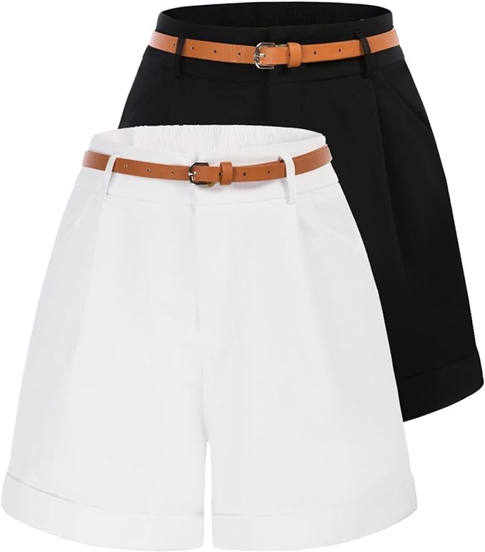 • Features: This high waisted shorts for women will make your legs slender and longer. Elastic back waistband with belt is comfortable for you.You can remove the belt into other one to change different looks whith can perfectly match different tops. Functional side and back Pockets are convenient to carry your mobile phone, wallet, key, etc. Folded hem is chic and unique.