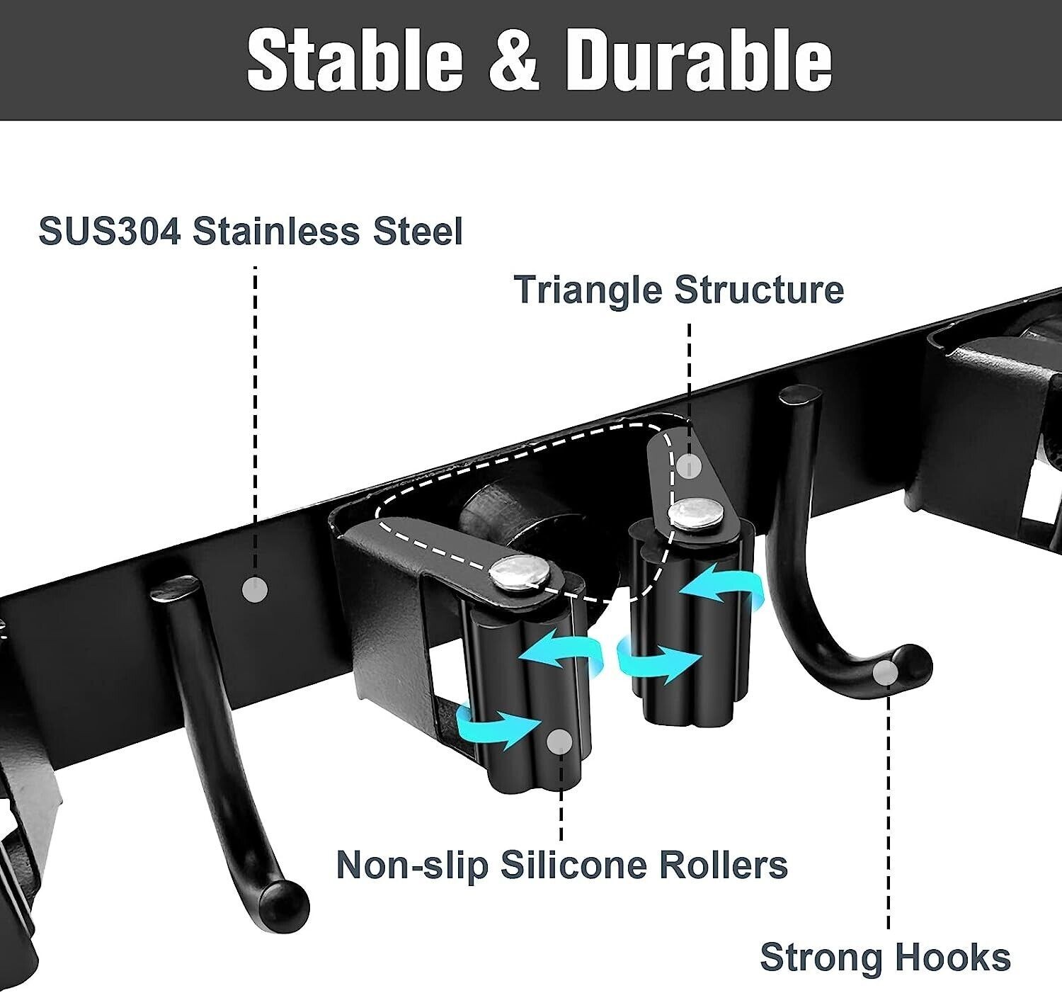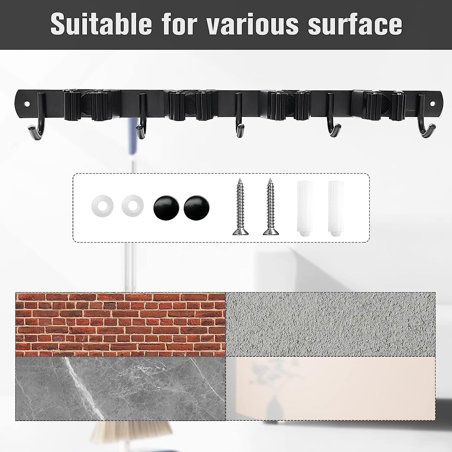 Broom and Mop Holder Wall Mounted Organizer Storage Waterproof, D