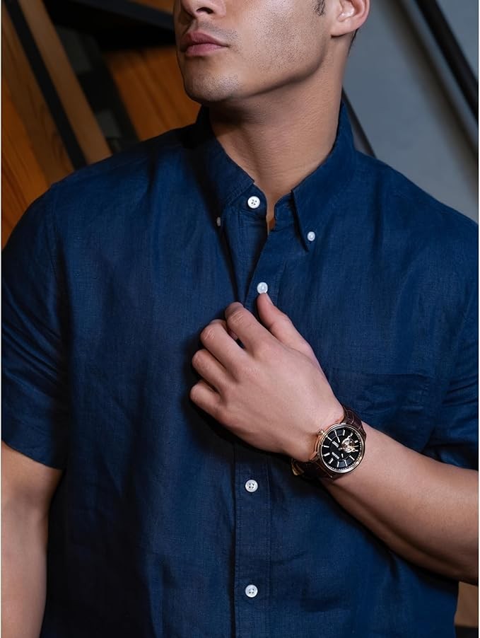 Bulova Men's Classic 3-Hand Automatic Leather Strap Watch, 21-Jewels, Hack Feature, Luminous Hands and Markers, Open Aperture and Exhibition Case Back