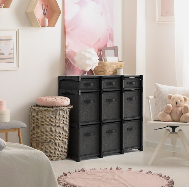 Adaptable Storage: Set up the shelf layout to suit your needs, with the smaller bins arranged at the top, middle, or bottom. Great for toy storage, craft storage, clothes storage, and closet organization.