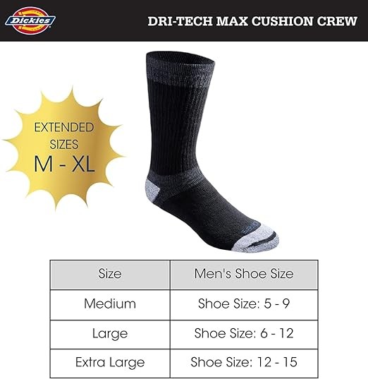 Dickies Men's Dri-tech Moisture Control Max Full Cushion Crew Socks Multipack
