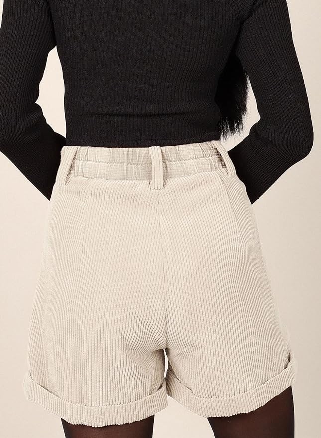 • Loose around the thighs and comfy around the waist There are multiple ways to wear a high waist roll-up corduroy shorts. You can pair shorts with crop, tshirts, tops, blouses, jackets, coats, sweater, sweatshirts, sneakers or heels to complete casual look.
