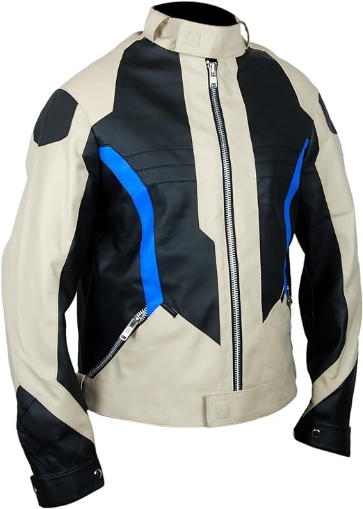 F&H Men's Beige Gaming Soldier Genuine Leather Jacket