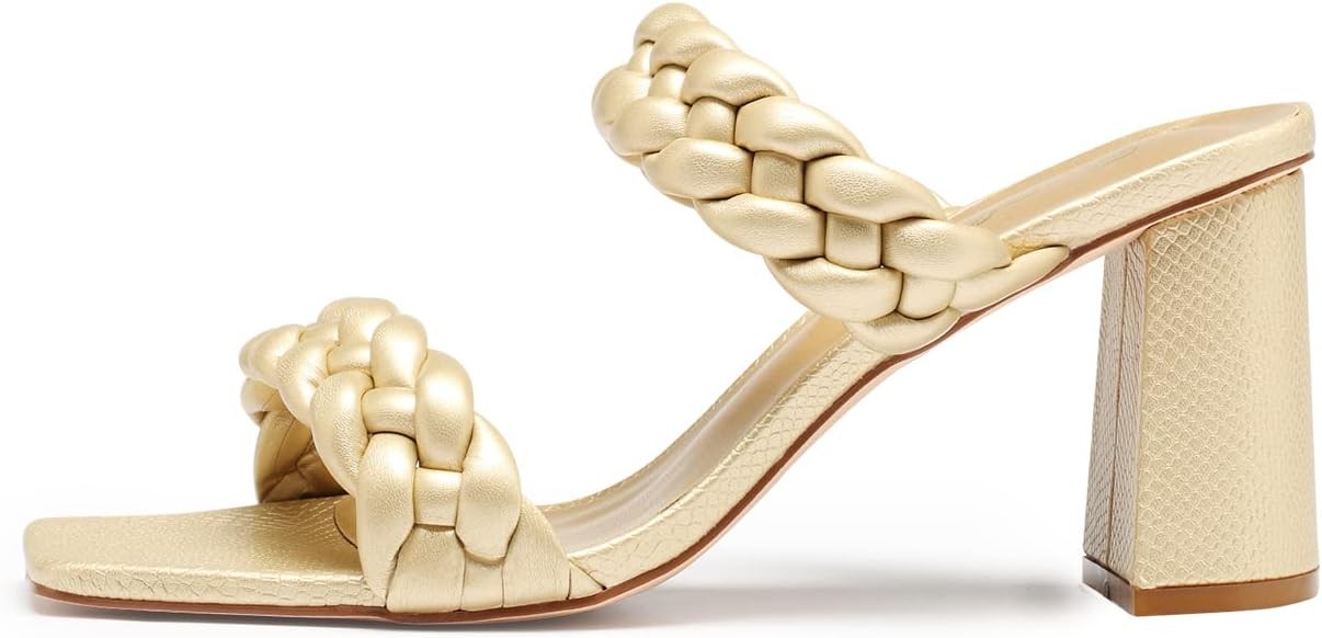 • ? ♥️ Stylish Color: Update your personal style with a touch of color –fabulous pink mule heels,fashion gold braided heels,sexy red slide heels, and classical black slipper heels,simple white braided heels , cute lilac purple heels these trendy open toe heels mule sandals will cover your styling needs and be sure turn heads!