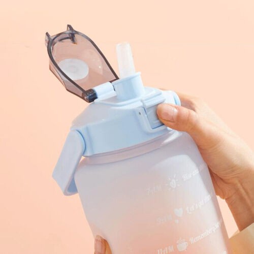 Half Gallon 64 OZ Motivational Water Bottle with Straw Time Marker BPA Free