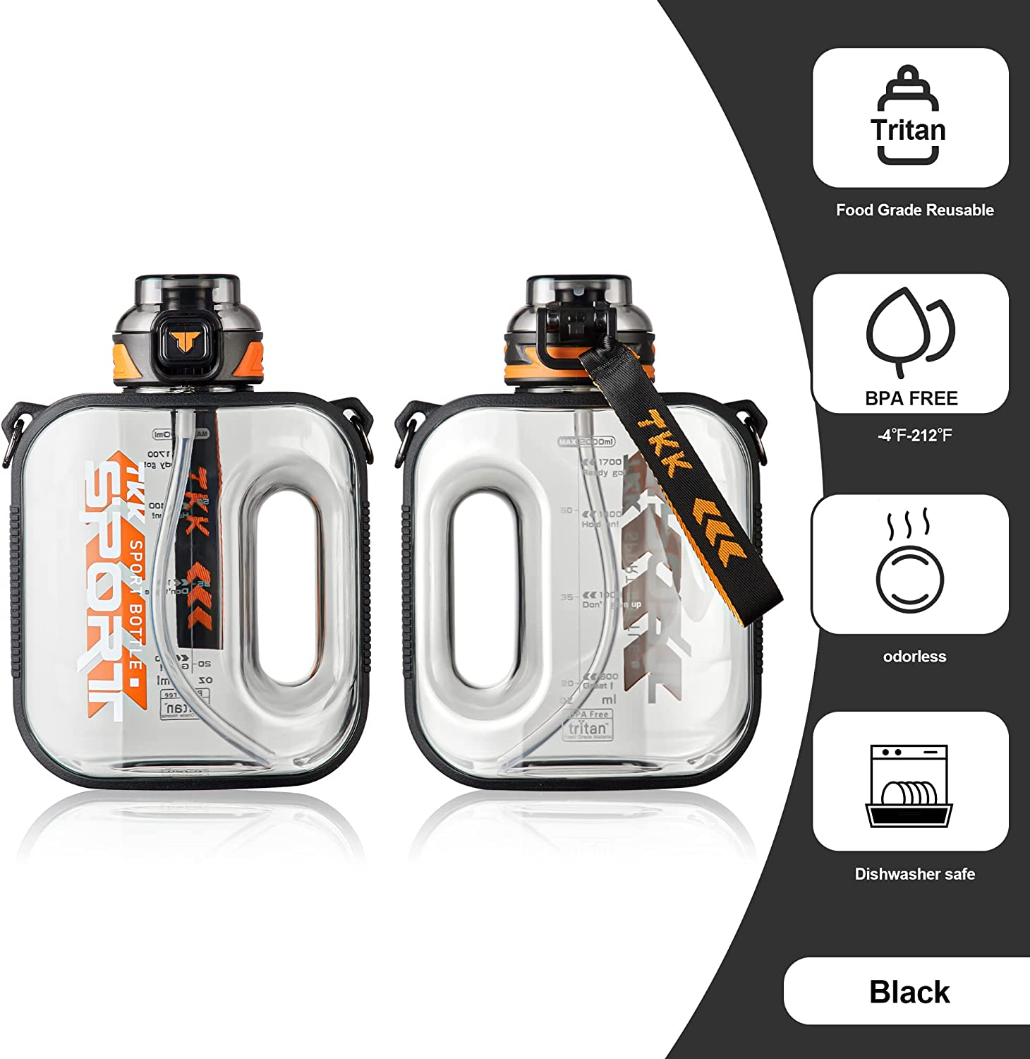 Half Gallon Water Bottle Jug with Straw Large Capacity Plastic Water Bottle Dish