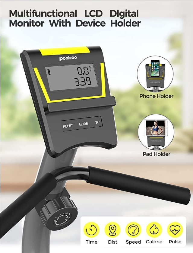Smooth Stationery and Safe Exercise, Upgrade Adjustable Seat and Handlebar, Upgrade Non-slip pedal& Easy to Move, LCD Monitor & iPad Holder, Personalized Fit Exercise Bike, Monitor & ipad holder, Adjustable Resistance, Adjustable Resistance&Smooth Belt Transfer, Enhanced tube, Double Triangular Structure, Adjustable Seat, Body-Fat Analysis, Bottle Holder, Calorie Monitor, Foldaway/Compact, Heart Rate Monitor, LCD-Display, Magnetic Brake System