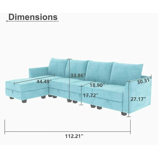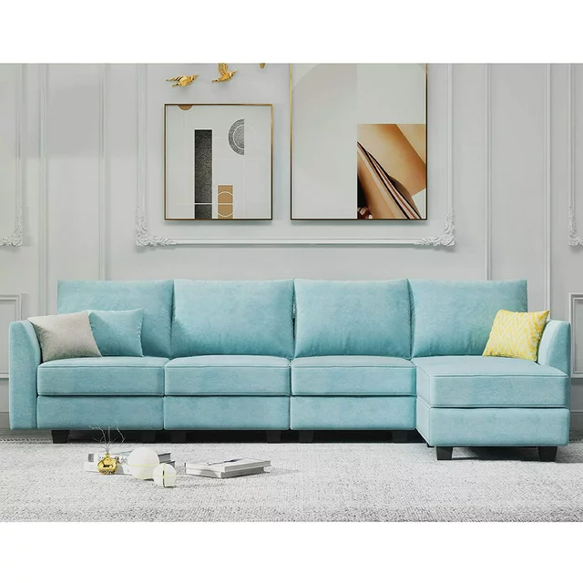 HONBAY Reversible Sectional Sofa L Shaped Convertible Couch with Storage, Aqua Blue