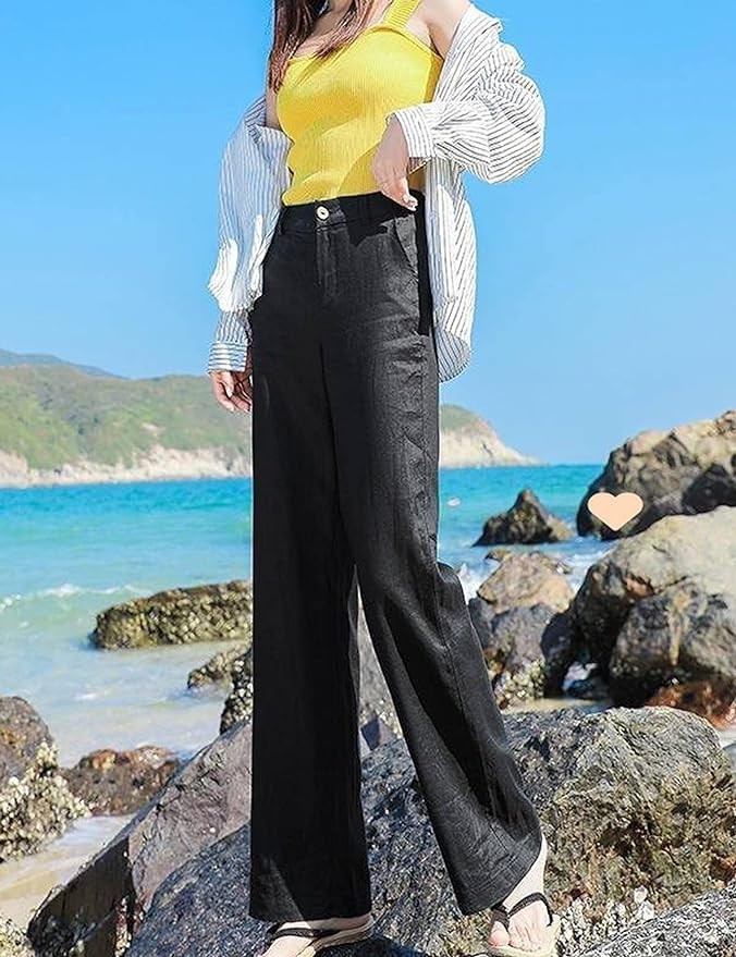 Flowy pant for the summer, fashion traveling pants, white pants women high waisted, high waisted dress pants for women, fashion comfy solid high waist long pants, beach button down pants