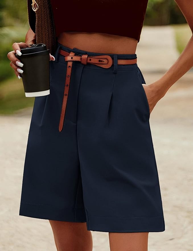 • PREMIUM MATERIALS - 80% Polyester, 16% Rayon, 4% Spandex, won't too soft, cool shorts and comfy shorts, create a crisp and sleek look. Flowy Bermuda shorts for women, summer shorts for women, dressy lightweight shorts for women, pleated shorts women.