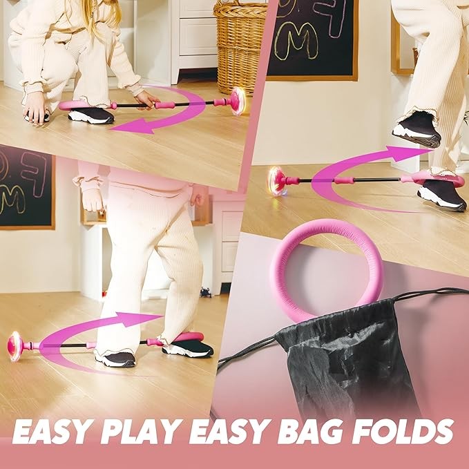 JOYIN Pink Ankle Skip Ball with Flashing Lights, Skip it Toy for Kids Indoor & Outdoor, Flashing Swing Ball Foldable Sports Toy, Birthday Gifts for Kids 3 4 5 +