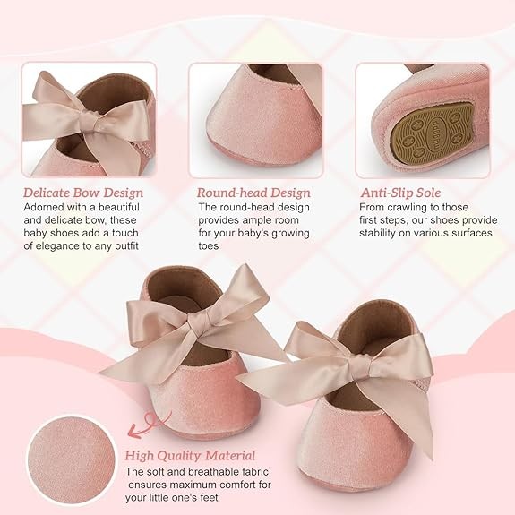 KIDSUN Infant Baby Girls Mary Jane Shoes Non-Slip Rubber Sole Ballet Slippers Princess Dress Wedding Shoes Newborn Crib Shoes First Walkers Shoes