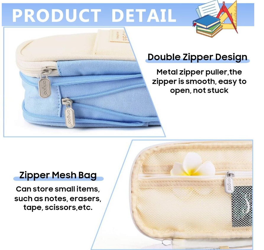 - Large enough to store all the stationery stuff, including a mesh zipper pocket and several loops compartment, also comes with a front pocket