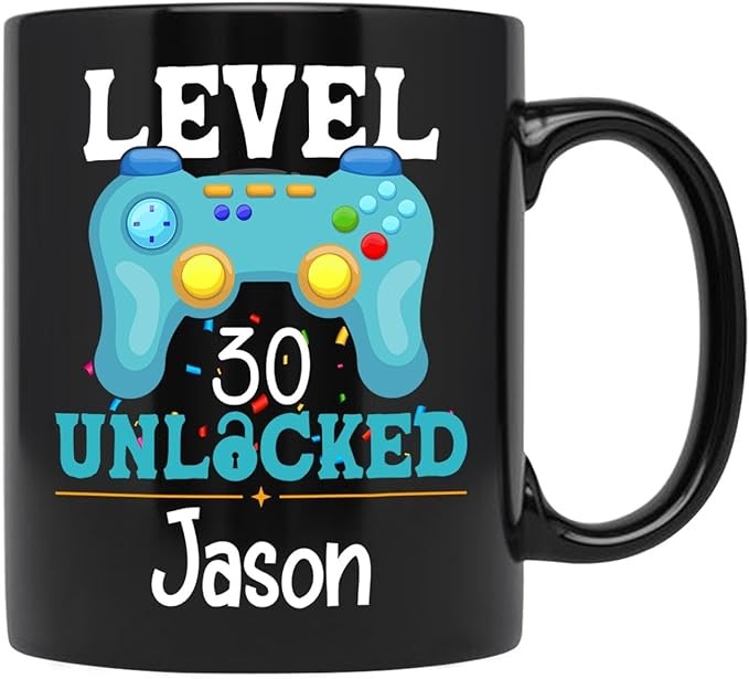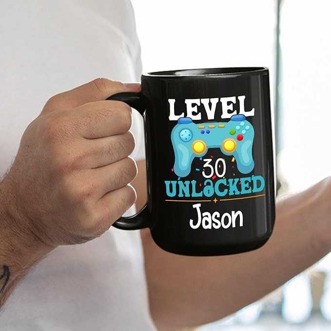 Level Unlocked Coffee Cup For Men Women, Level Unlocked Mug, Customized Birthday Gifts For Gamer/Gaming Lovers, Personalized Happy Birthday Ceramic Mug, Birthday Gift Idea, Black Cup 11oz or 15oz