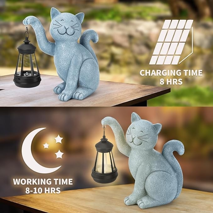 【Easy to Use-Solar Lighting】There is a switch on the outdoor courtyard decoration statue cat,Harnessing solar power, this eco-friendly outdoor decor illuminates your garden or backyard at dusk, creating a cozy and magical ambiance. No batteries or cords are required, making it a hassle-free addition to your outdoor decor,the solar panel on the solar cat will be fully charged within 6-8 hours during the day, and the LED will light up automatically at night, which can last for about 8-10 Hour.
