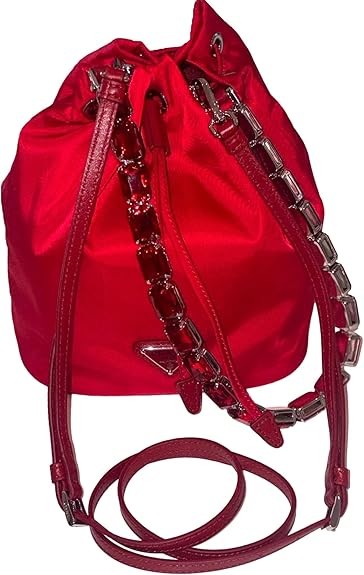 • The Prada Re-Nylon Rosso Red Drawstring Bucket Bag is a bold fusion of sustainability, glamour, and modern design. Model: 1BE067