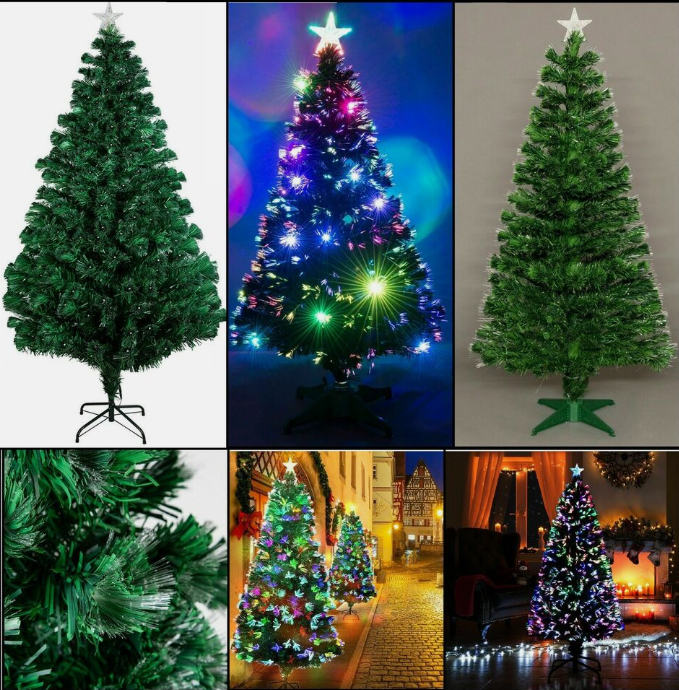 Pre Lit Fiber Optic Christmas Xmas Tree Colour Changing Xmas Lights Star Green
