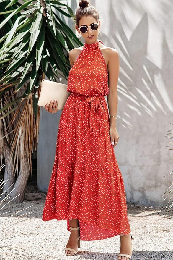 Everyone Needs This Summer Boho Long Dress!Halter neck is easy to show your sexy curve, and the adjustable strap can be adjusted freely according to your needs, making you comfortable all day long.