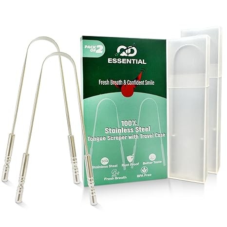 • Travel Essentials 2 piece kit comes with travel case for each stainless steel tongue scraper for adults, making stainless steel tongue scrapers easy to carry anywhere for fresh breath anytime.