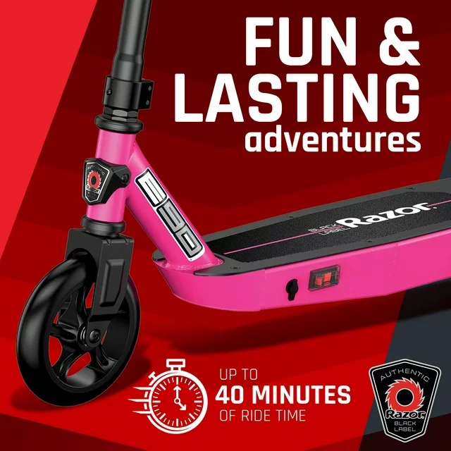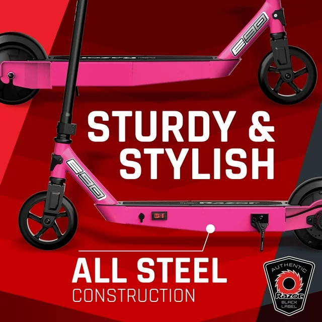 Razor Black Label E90 Electric Scooter - Pink, for Kids Ages 8+ and up to 120 lbs, up to 10 mph