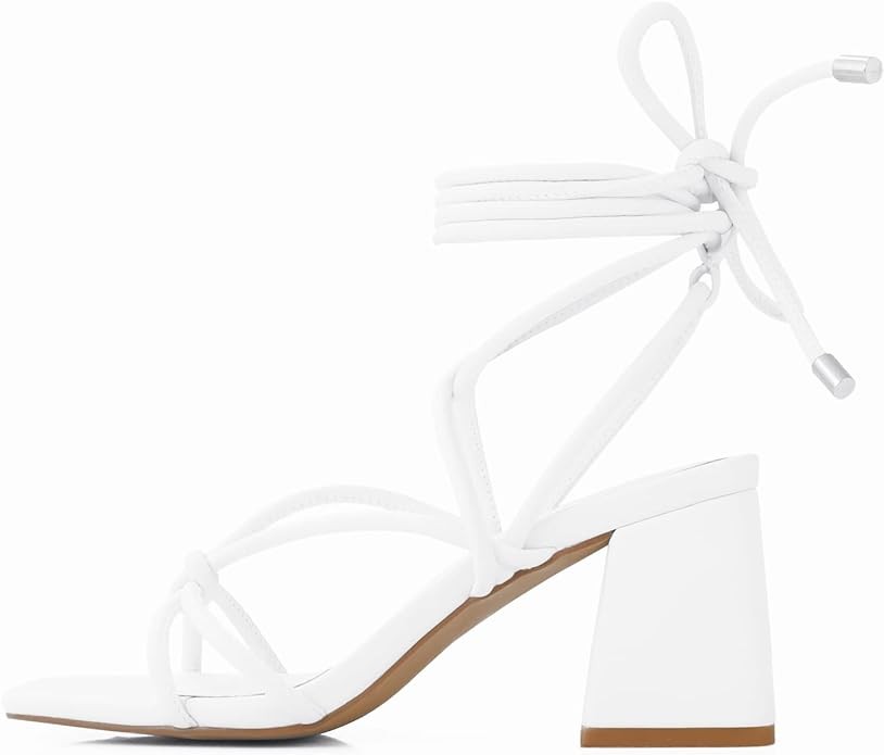 Shoe'N Tale Lace Up Heels for Women Ankle Strappy Gladiator High Heeled Sandals Chunky Block Heel Square Open Toe Criss Cross Dress Shoes