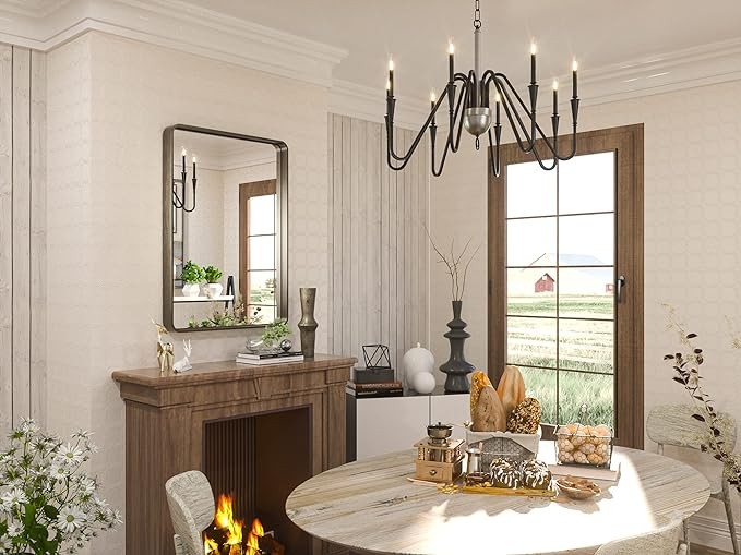 • ✨【Vertical or Horizontal Installation】 The package dimension is 33"x24"x4". The metal frame vanity mirror can be hung vertically or horizontally. Besides, the mirror can be leaned to the wall as decoration. Please read the manual to select two correct holes before punching holes