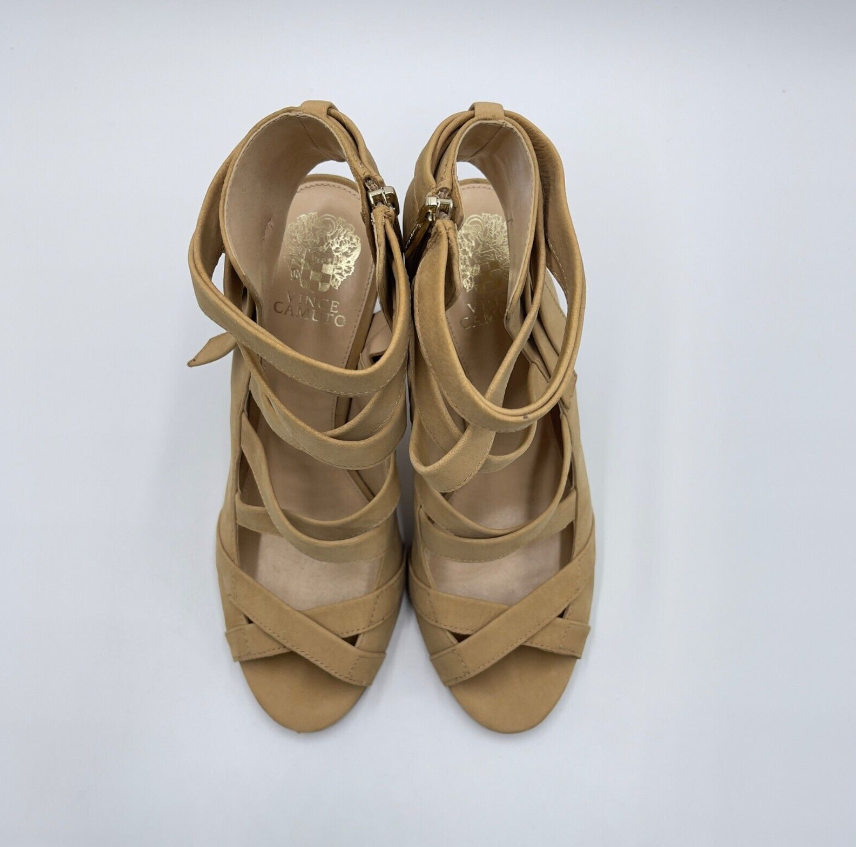 Vince Camuto Sammson Sandals Womens Size 10 Tan Strappy Leather Zip