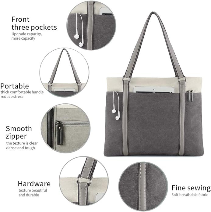Women Laptop Tote Bag for Work Lightweight Splice Canvas 15.6 Inch Handbag Purse