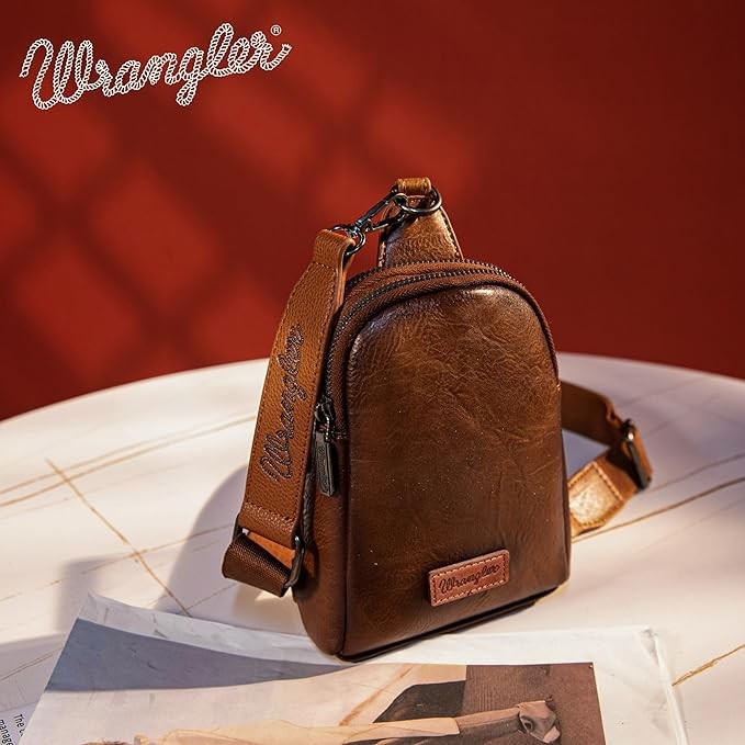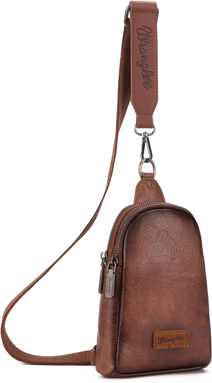 Wrangler Small Sling Bag for Women Fanny Packs Crossbody Bags Leather Chest Bag Cross Body Purse for Gift,WG87-210A-DBRnew