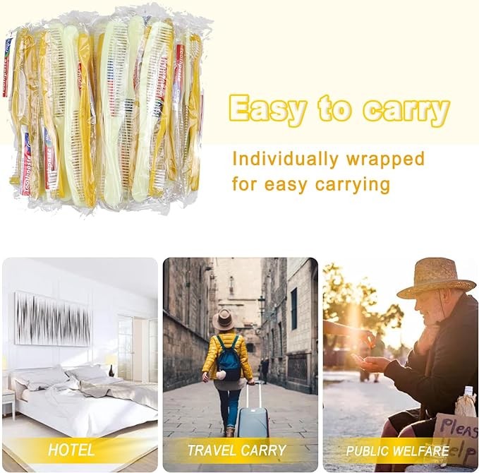 • 【?Individually Wrapped】The disposable toothbrush kit each includes a toothbrush, 10g toothpaste and comb.You receive 20 pcs of toothbrushes with toothpaste and comb set, enough for daily or travel use.