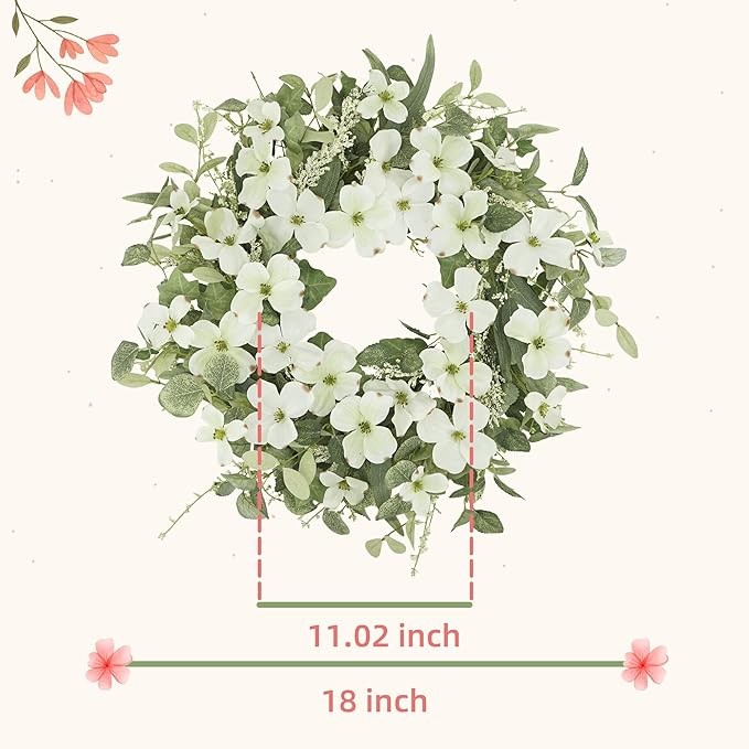 • [IDEAL SIZE for HOME DECOR]: This decorative spring wreath measures 18" in overall diameter, which is big enough for front door decoration. This eucalyptus wreath is perfect for hanging on doors, windows, and farmhouses