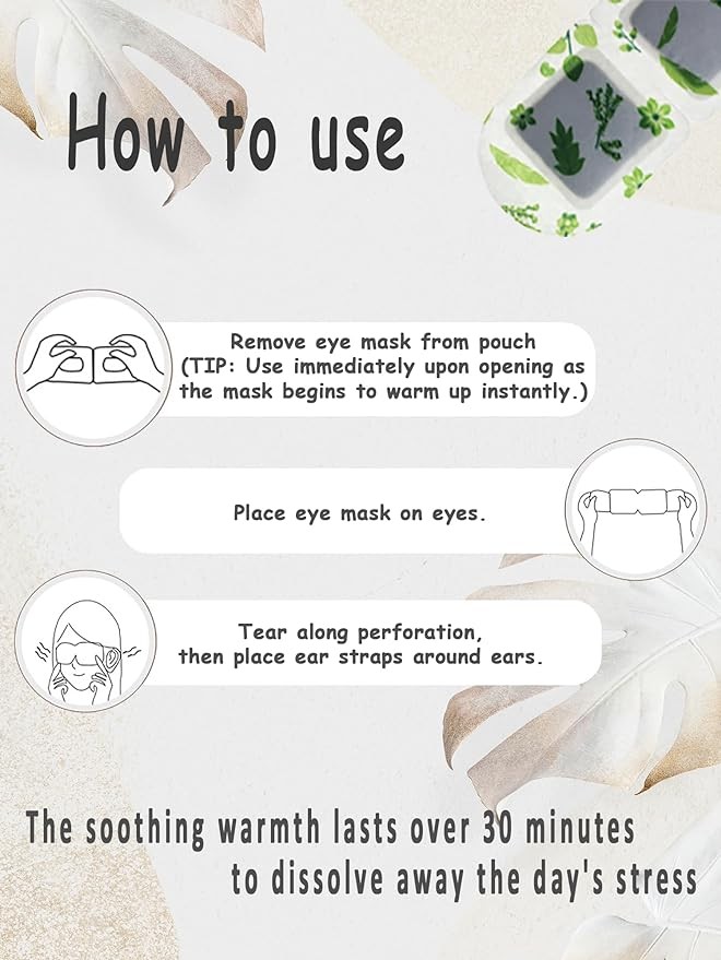 You can enjoy warming Eye SPA with YuuTbiu Steam Sleep Eye Mask, which promoting blood circulation and relieving eye fatigue to aiding sleep for Men and Women.