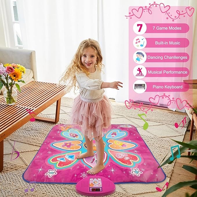 • ?【The Perfect Gift for Kids】: This music dance mat is a great early education toy that helps improve your child's hand-eye coordination and strengthens parent-child interaction. It's the perfect gift for 3-8 year old girls.