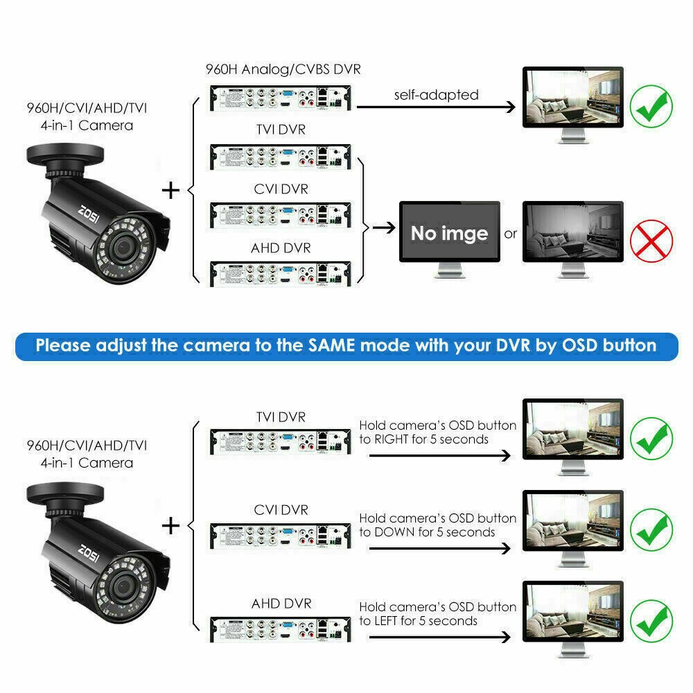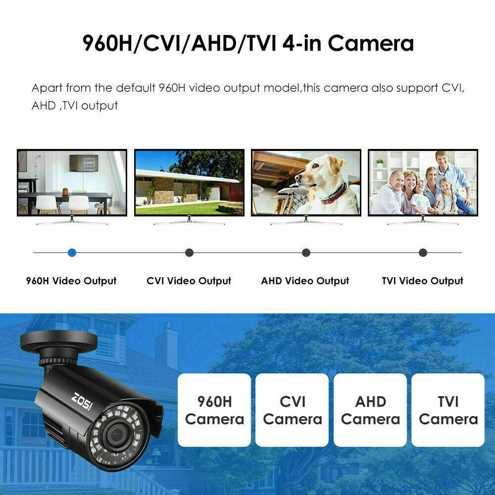 ZOSI 1080p 4in1 Wired Home CCTV Security Camera Outdoor Waterproof Night Vision